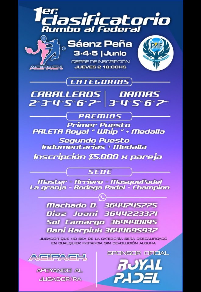 »» Evento: 1er Clasificatorio rumbo al Federal »» Localidad: Roque S. Peña »» Fechas: 03/06/2022 al 05/06/2022