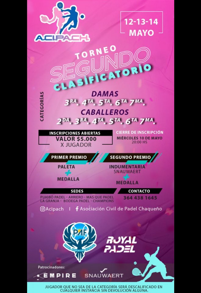 »» Evento: Segundo Torneo Clasificatorio 2023 »» Localidad: Roque S. Peña »» Fechas: 12/05/2023 al 14/05/2023